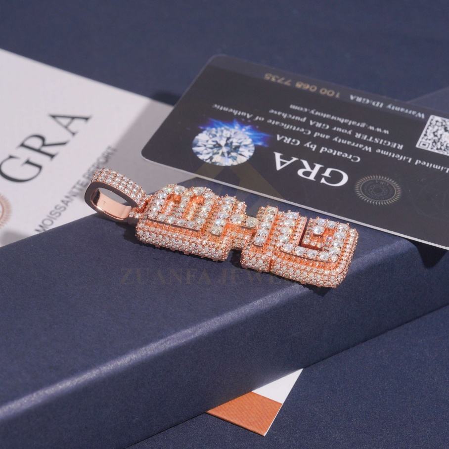 Collar con Colgante de Diseño en Oferta, Plata de Ley 925, Pasa el Test de Diamantes, Diamantes Moissanita, Colgante Vertical Personalizado