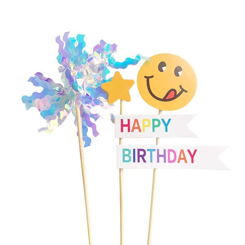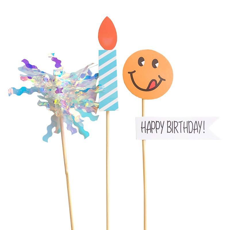 Gran oferta de diferentes adornos para tartas con corazón de cara sonriente y borla colorida para decoración de tartas de cumpleaños