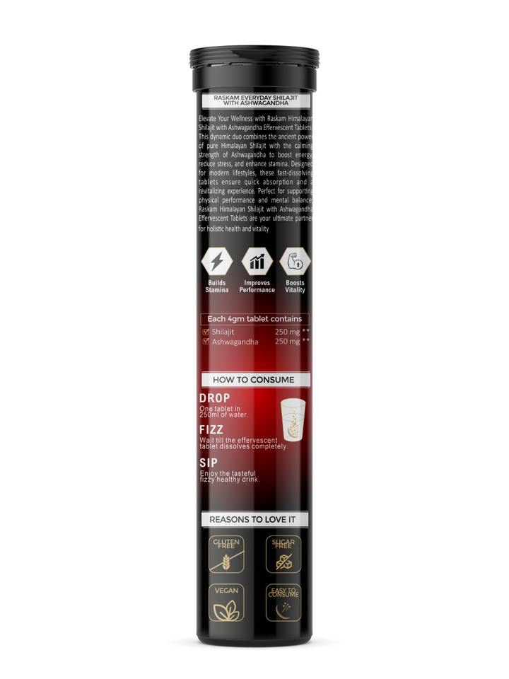 Directo de fábrica proveedor Raskam Shilajit Ashwagandha potenciador de energía efervescente para adultos alivio del estrés inmune mujeres embarazadas