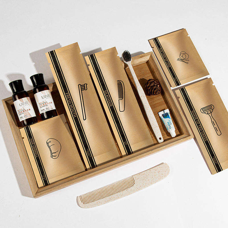 Juego de Baño Desechable de Papel Kraft Vintage Ecológico Personalizado para Hoteles y Casas de Huéspedes, con Cepillo de Dientes y Pasta Dental, Todo en Uno, en Oferta