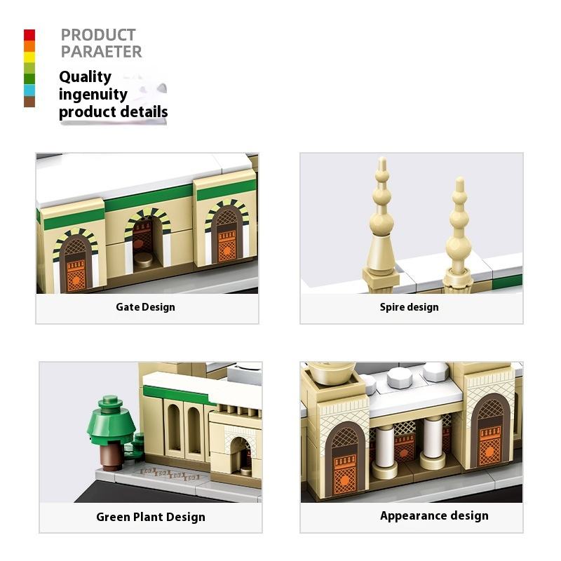 Gran oferta, juguete de construcción educativo, bloques de mezquita, diseño de vista de calle para niños, juego de Halloween, graduación, Navidad, boda, Pascua