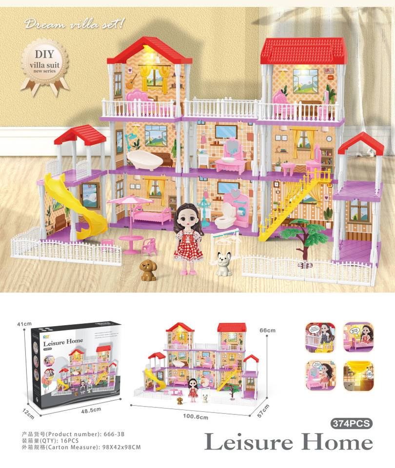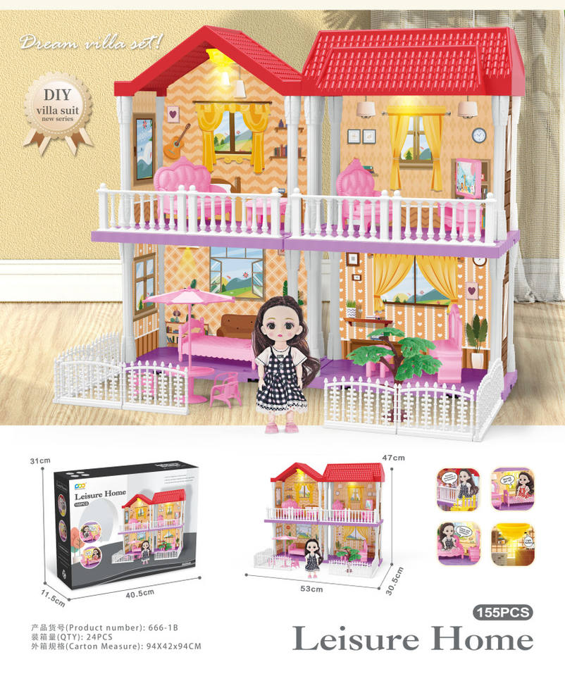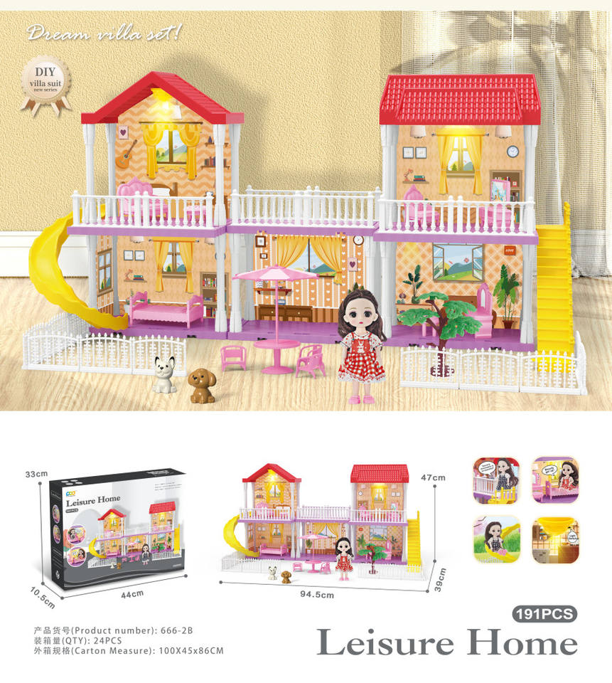 Nombre del producto:Serie de la casa de muñeca con muñeca y perros de moda