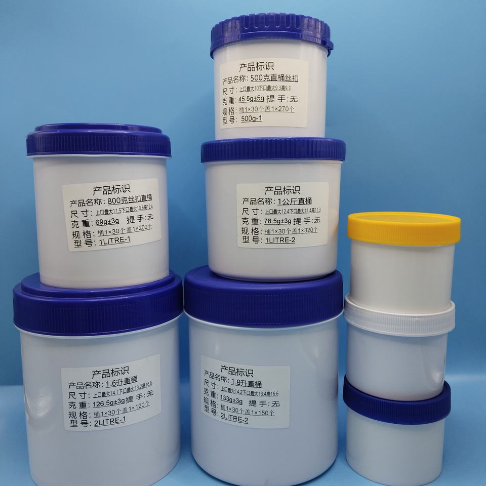 Gran oferta, cubo de plástico redondo de grado alimenticio 250g 500g 800g 1000g 1600g con tapa, forma redonda reciclable para uso químico de alimentos