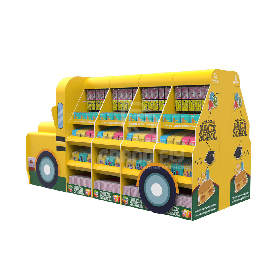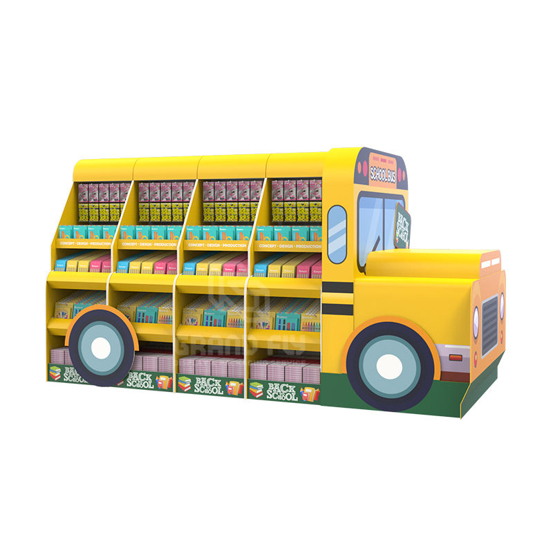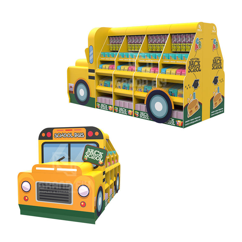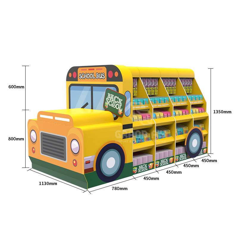 Exhibición de cartón en forma de autobús escolarNombre del producto