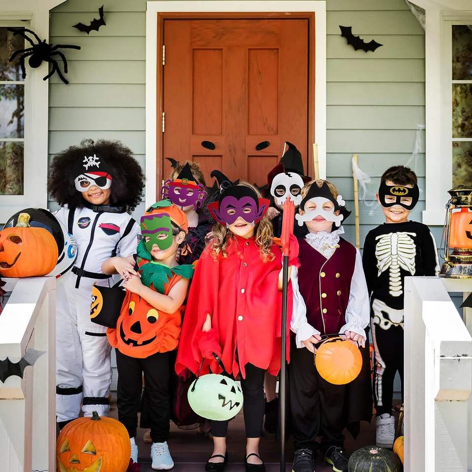 Gran oferta, suministros para fiestas de Halloween, surtido de diferentes diseños personalizados, máscaras de fieltro ecológicas de calidad superior para adultos y niños
