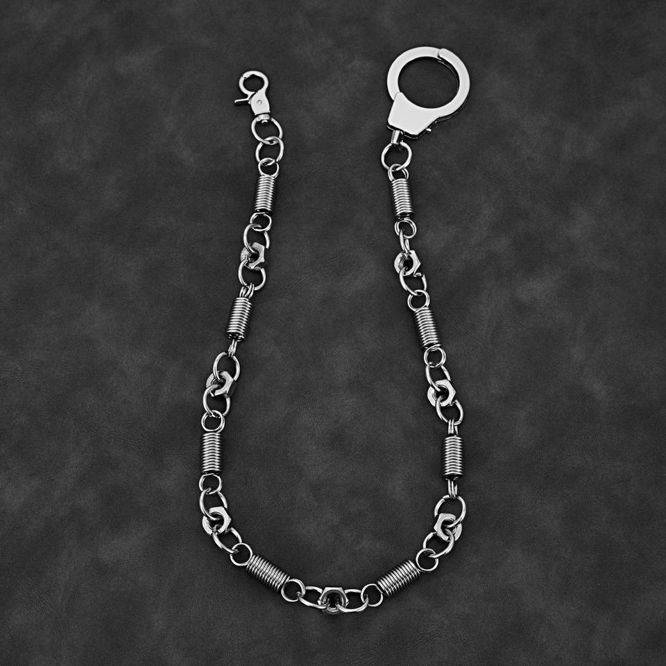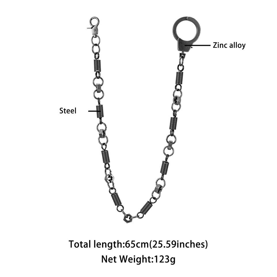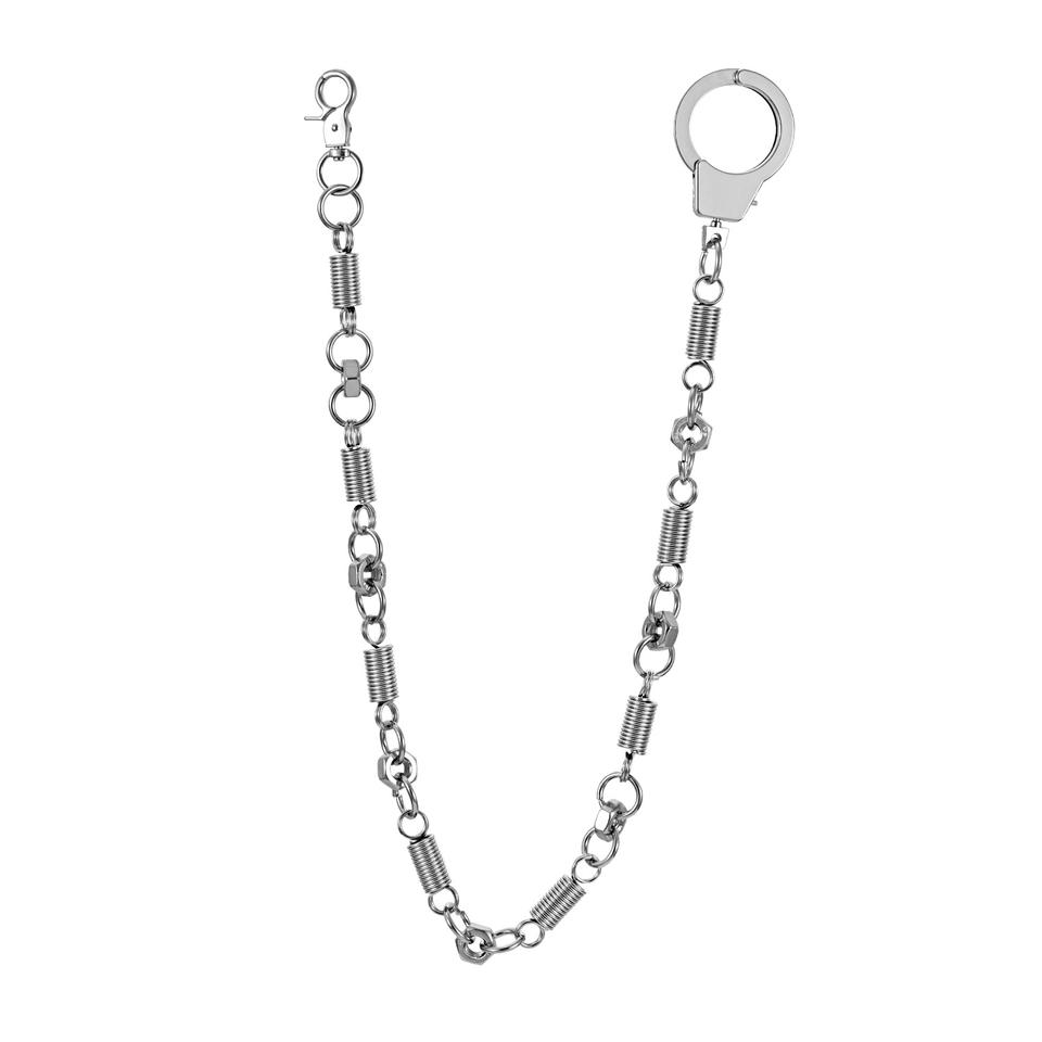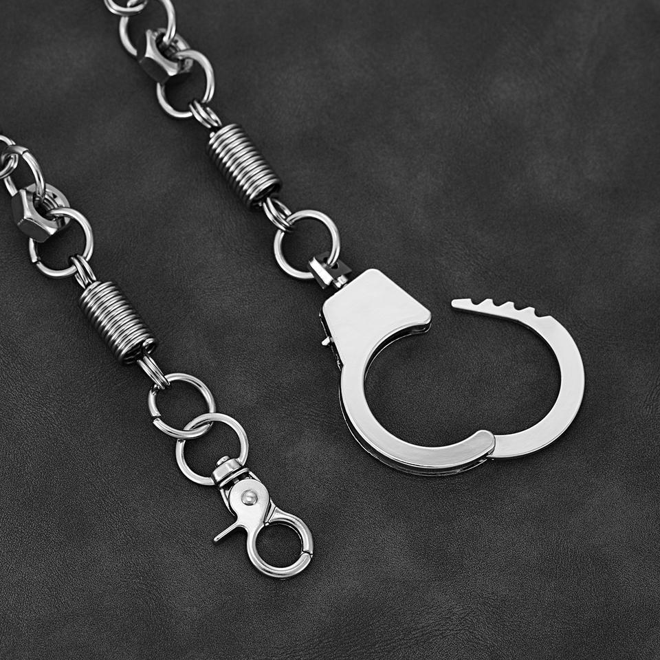 Gran oferta, cadena de cartera con esposas, Clip de pantalón Punk de enlace de resorte plateado para rebeldes, cadena de pantalón de Metal duradera