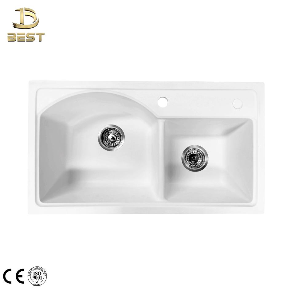 Gran oferta, fregadero de cocina de doble cuenco individual hecho a mano, grifo compuesto de cuarzo de estilo granito, duradero, elegante, vietnamita directo