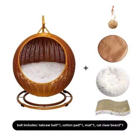Oferta Especial: Cesta Colgante de Ratán PP/PE Tejida a Mano para Gatos, Diseño de Dibujos Animados, Desmontable, Lavable, Antiadherente al Pelo, Directo de Fábrica