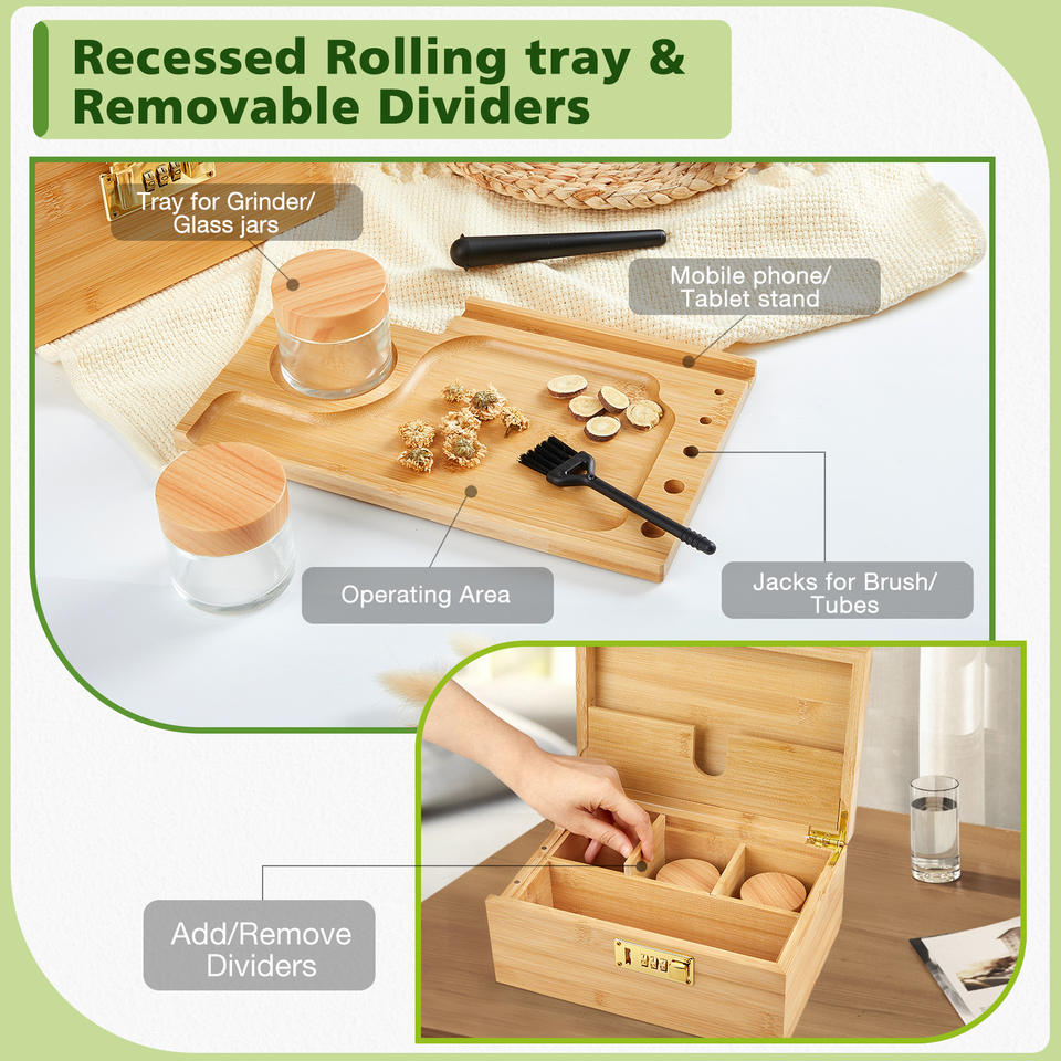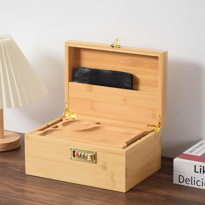 Caja de Almacenamiento de Hierbas y Tabaco de Bambú Grande con Cerradura de Combinación, en Colores Rosa, Azul y Negro, en Oferta