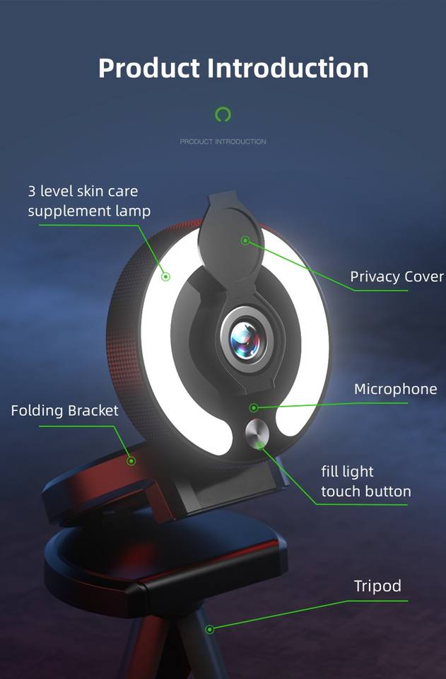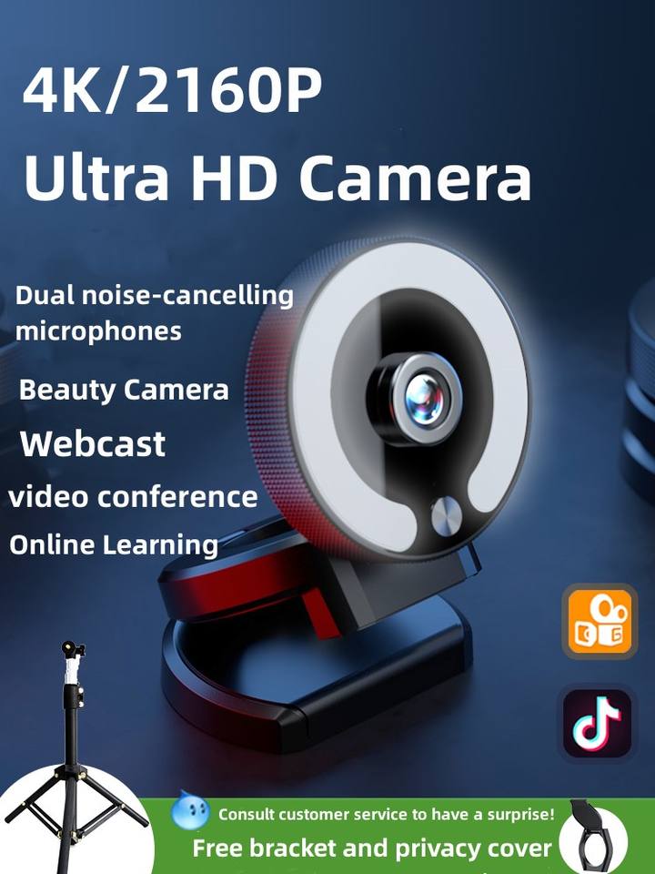 Gran oferta, cámara web de cámara de ordenador USB 4K de alta resolución, luz de relleno LED, Sensor de imagen CMOS para transmisión en vivo de clase en línea
