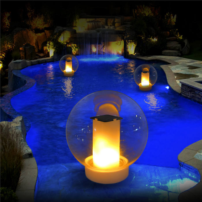 Venta caliente IP68 Impermeable Solar Powered Antorcha Llama Flotante LED Luz de mesa de piscina