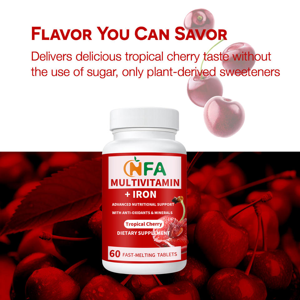 Vitamina A, Vitamina C, Vitamina D3, Vitamina E, Vitamina K1, Tiamina, Riboflavina, Niacina, Vitamina B6, Folato, Vitamina B12, Biotina, Yodo, Ácido pantoténico, Zinc, Selenio, Manganeso, Cromo, HierroIngrediente principal