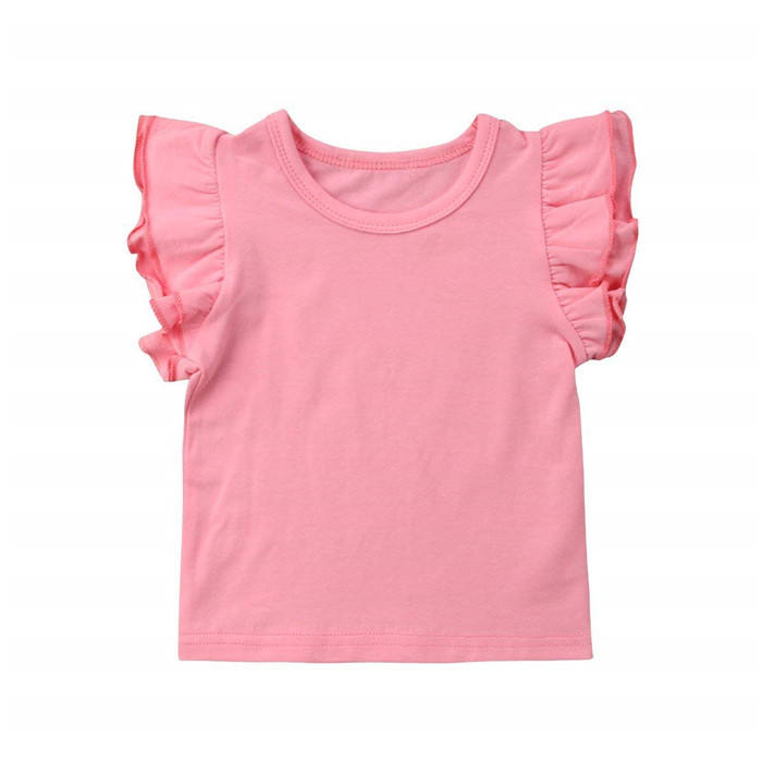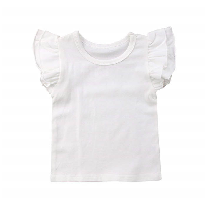 Camiseta de Algodón para Bebé Niña con Volantes en los Hombros, Ajuste Ceñido, Oferta Especial