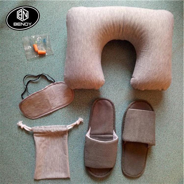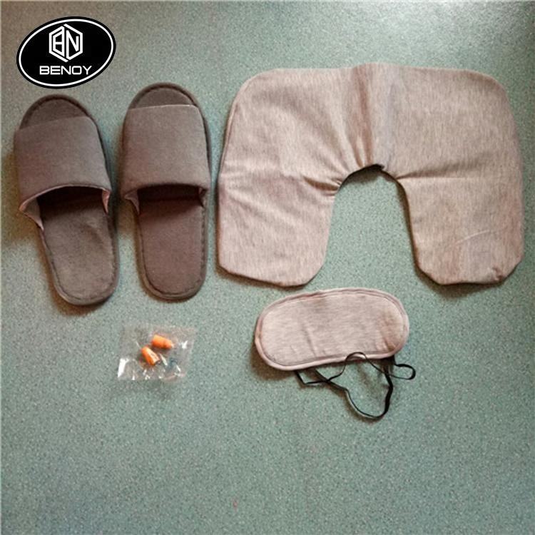 Set de viaje con almohada, antifaz, pantuflas y tapones para los oídos