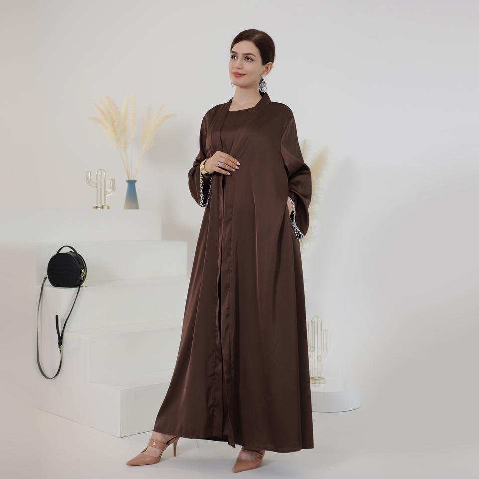 Nombre del producto:Venta caliente Islamica Color sólido Perla 2 piezas vestido musulmán