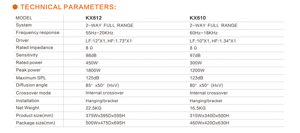 Frequency Response:55Hz-20KHz