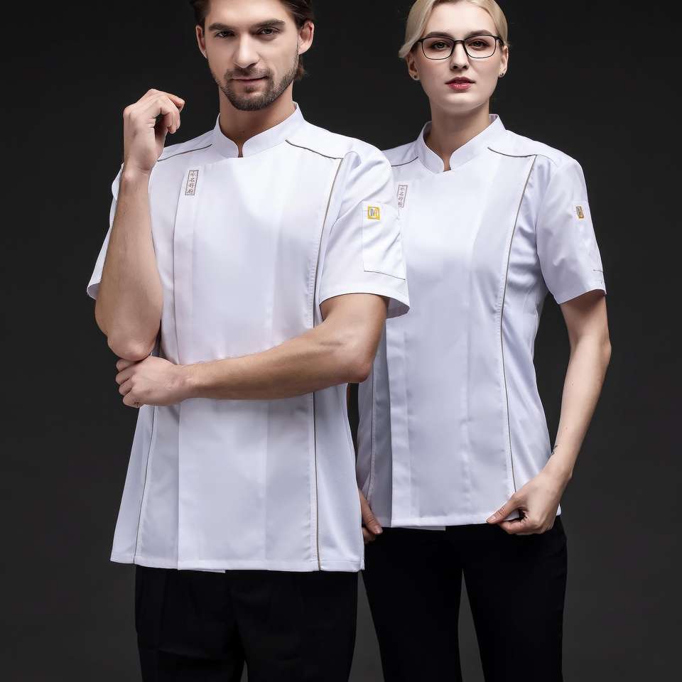 Venta caliente cocina manga corta Chef señoras chaqueta para hombres y mujeres Chef chaquetas para la venta