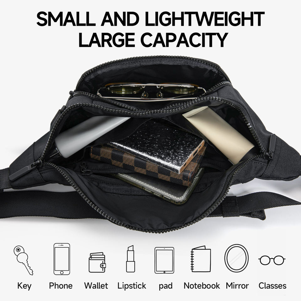 Riñonera Negra Multifuncional, Resistente al Desgaste, con Bolsillos Grandes, para Deportes al Aire Libre, Viajes y Uso Diario, en Oferta