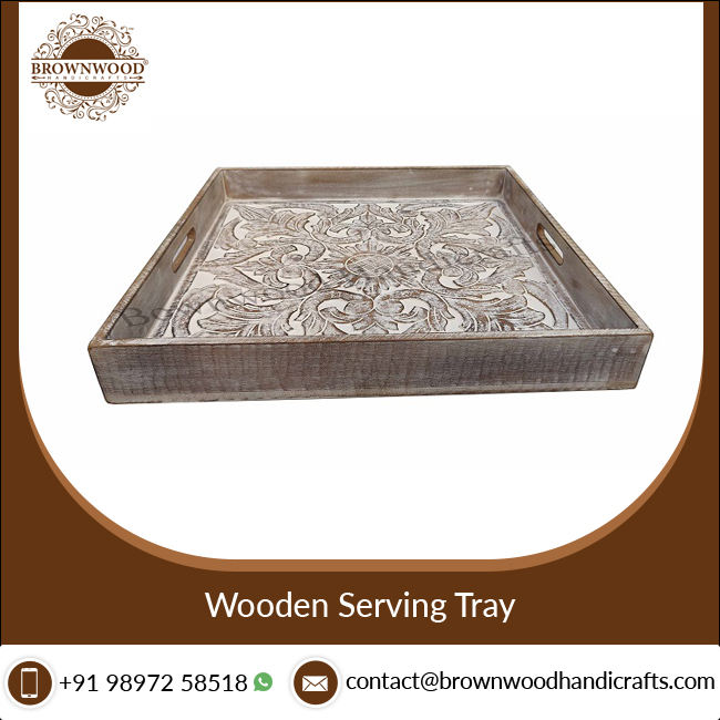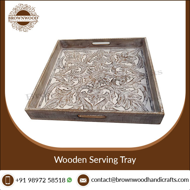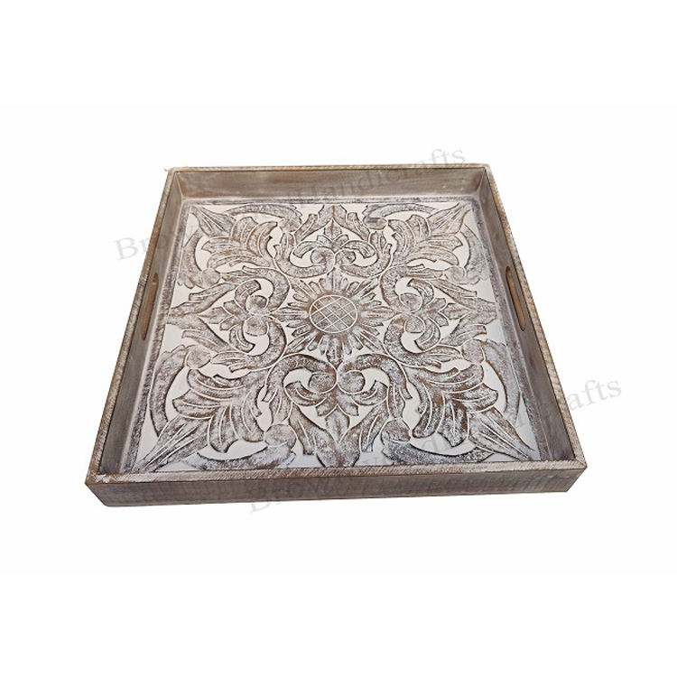 Bandeja grande cuadrada tallada madera de la porción con las manijasNombre del producto