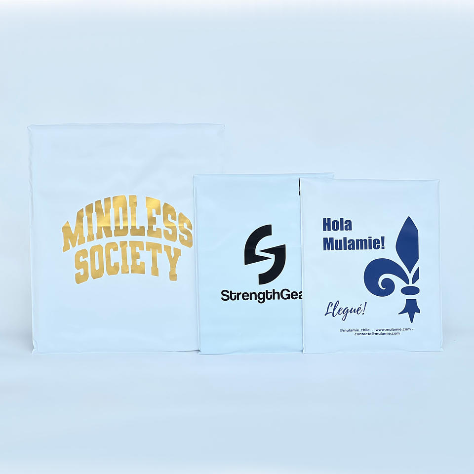 Bolsa de Envío Ecológica de Polietileno Rojo con Logotipo Gris, Bolsa de Burbujas Mate Blanca para Ropa y Camisetas