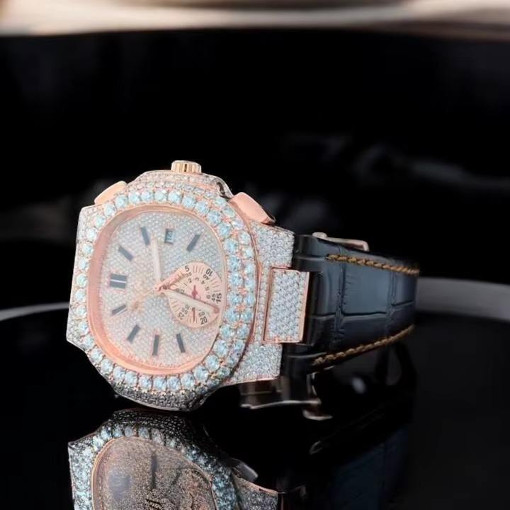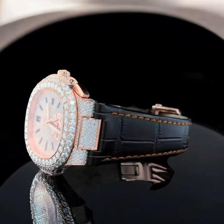 Reloj Analógico de Pulsera de Cuero Resistente al Agua Automático de Colección Hip Hop con Moissanita VVS de Acero Inoxidable de Lujo para Hombre en Oferta