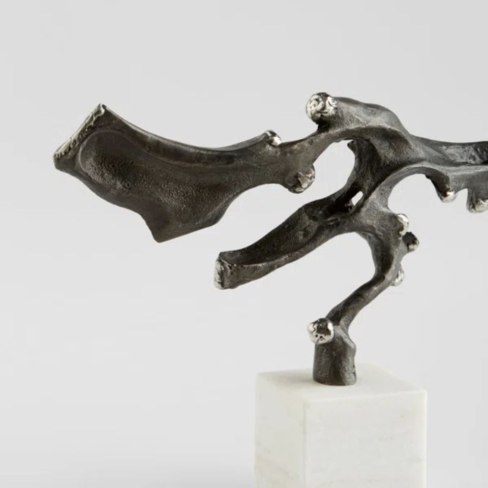 Escultura Metálica Hecha a Mano de Forma Irregular en Base de Mármol Blanco, Adorno Artístico Moderno para Mesa, Figura Escultórica de Alta Gama