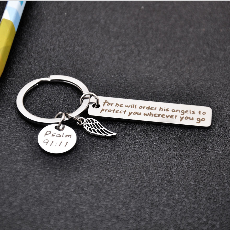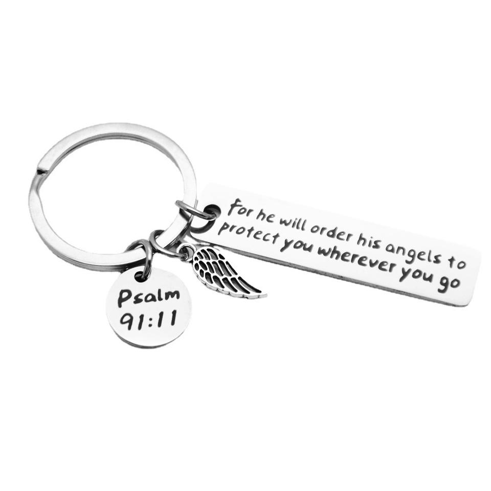 Gran oferta llavero de Metal llavero él ordenará a sus ángeles que te protejan donde quiera que vayas llavero único para uso Personal