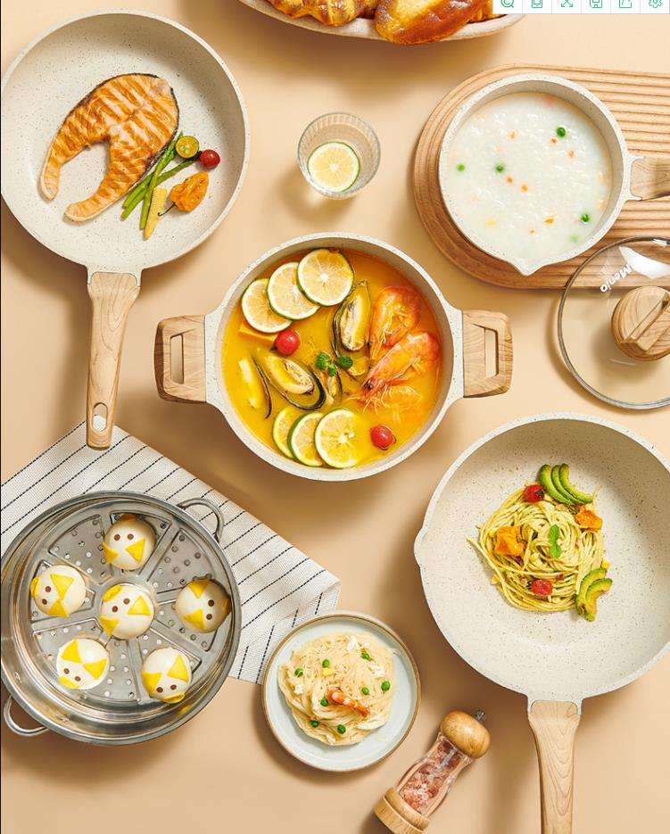 Juego de utensilios de cocina de aleación de aluminio de cerámica antiadherente de diseño moderno de gran oferta con tapa de vidrio, utensilios de cocina, ollas y sartenes