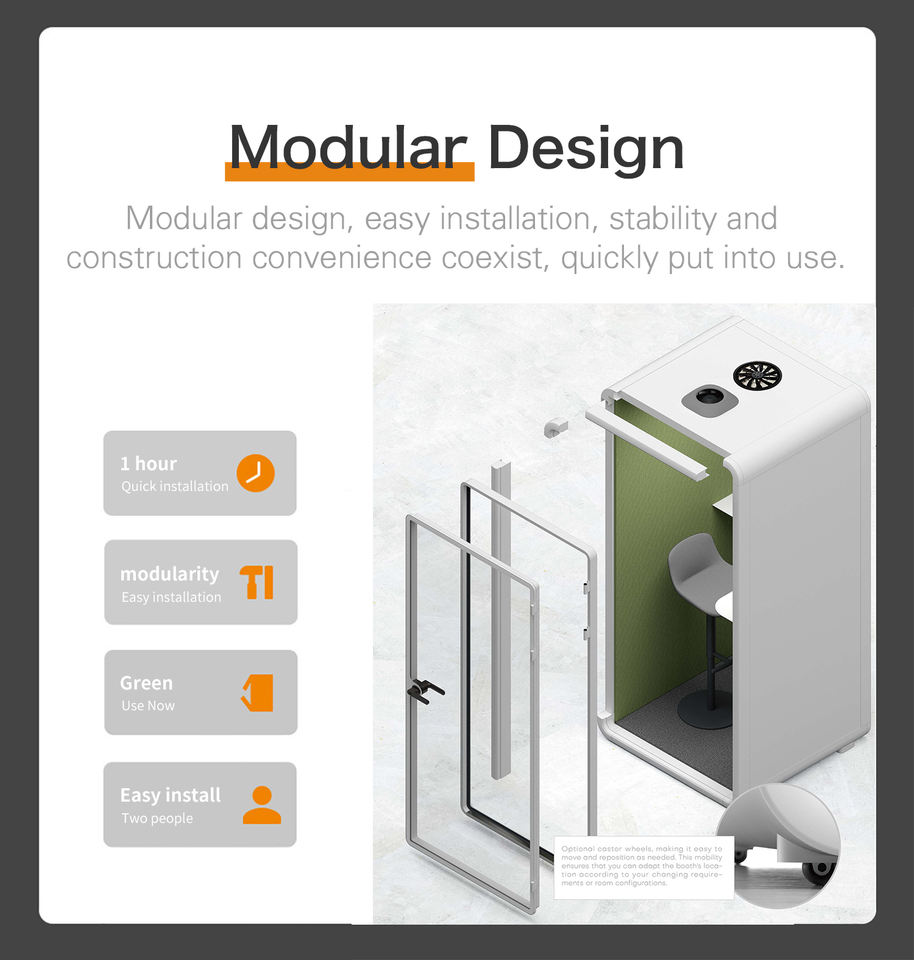 Cabina Telefónica de Oficina Insonorizada Móvil Moderna en Oferta y Cabina de Grabación Acústica para Centros Comerciales y Espacios de Trabajo Compartidos, Modular y Personalizable