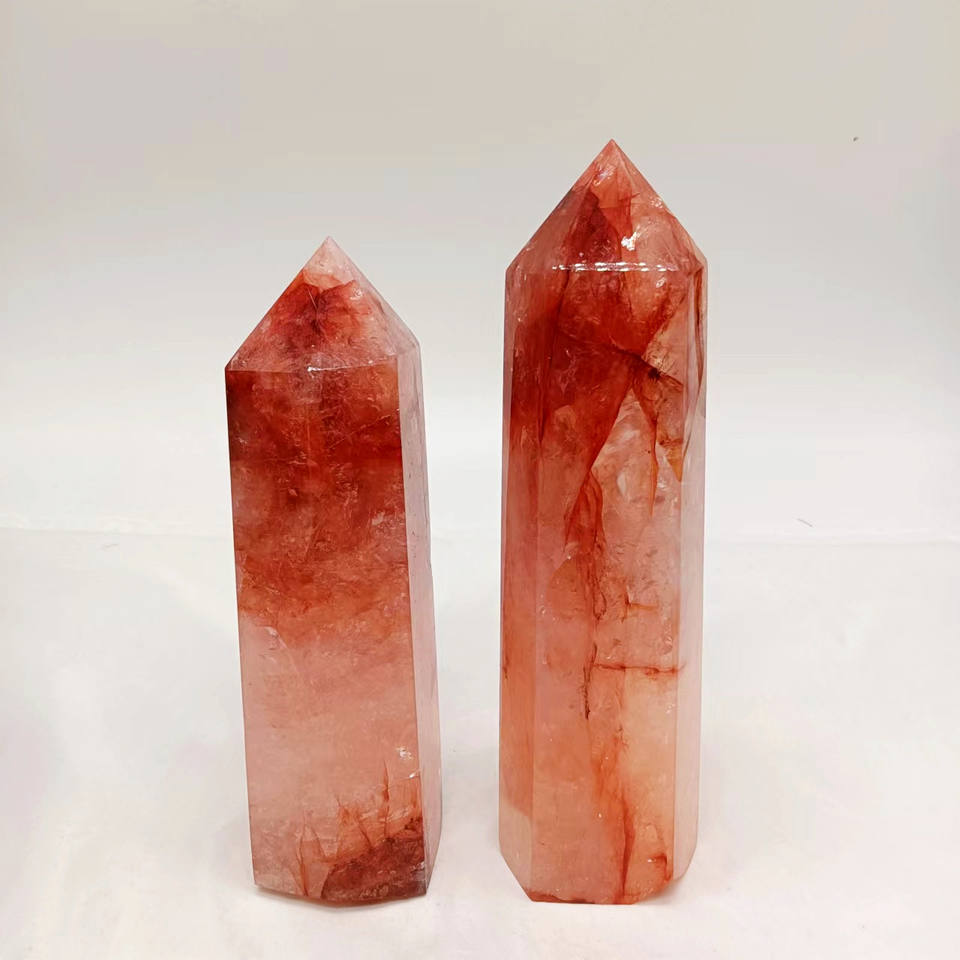 Torre de cristal rojo de cuarzo con fuego Natural, cristales curativos, varita de punto