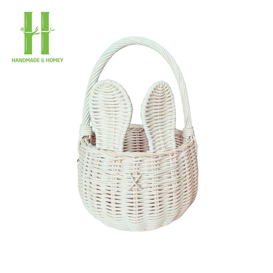 Gran oferta de cestas de Pascua de conejo de ratán blanco Natural para niños, cestas de juguetes de mimbre para niños, Cestas tejidas a mano de Vietnam, variedad de colores OEM