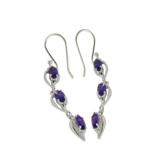 Gran oferta, nuevo diseño, forma ovalada, pendientes de gota de piedras preciosas de amatista, pendiente de Plata de Ley 925 para mujer
