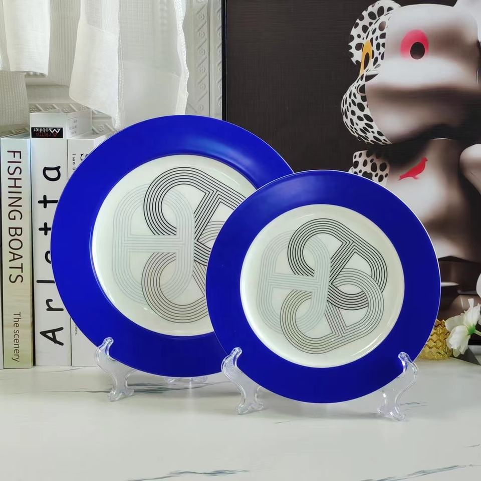 Palabra clave:Plato de cena de porcelana fina, cuchillo y cuchara.
