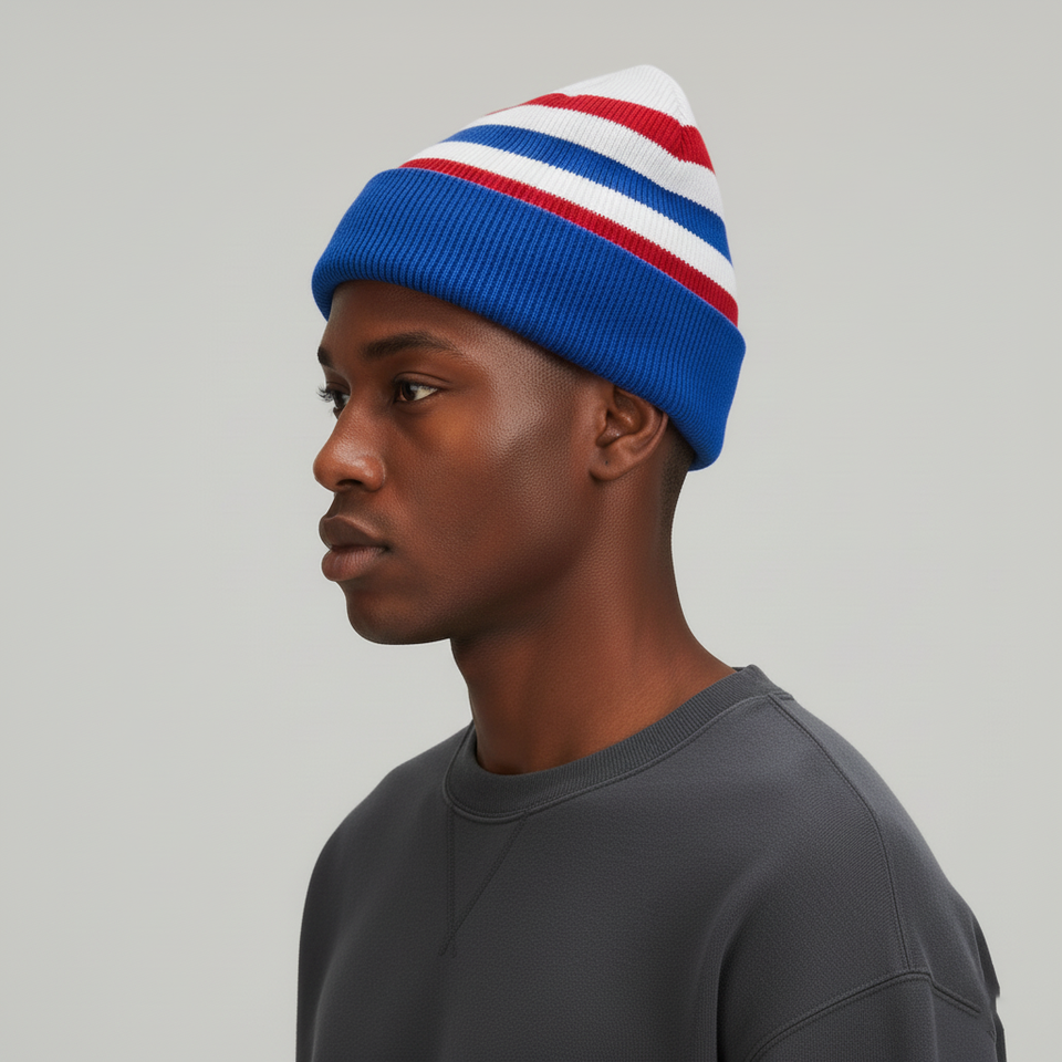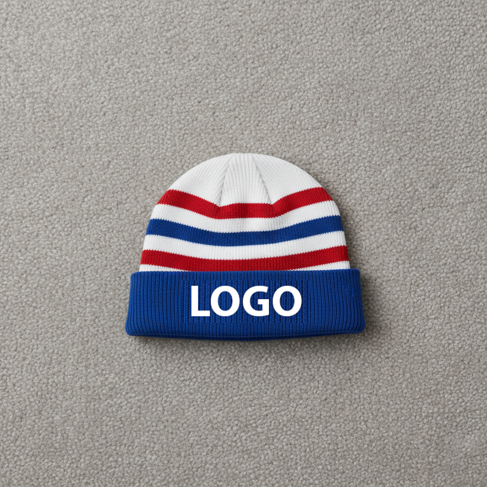 Gorro de Punto Jacquard con Bordado 3D Personalizado de Alta Calidad OEM, Gorros de Punto a Cuadros con Diseño Único y Elegante para la Playa