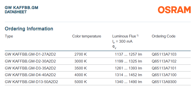 2700K, 3000K, 3500K, 4000K, 5000K