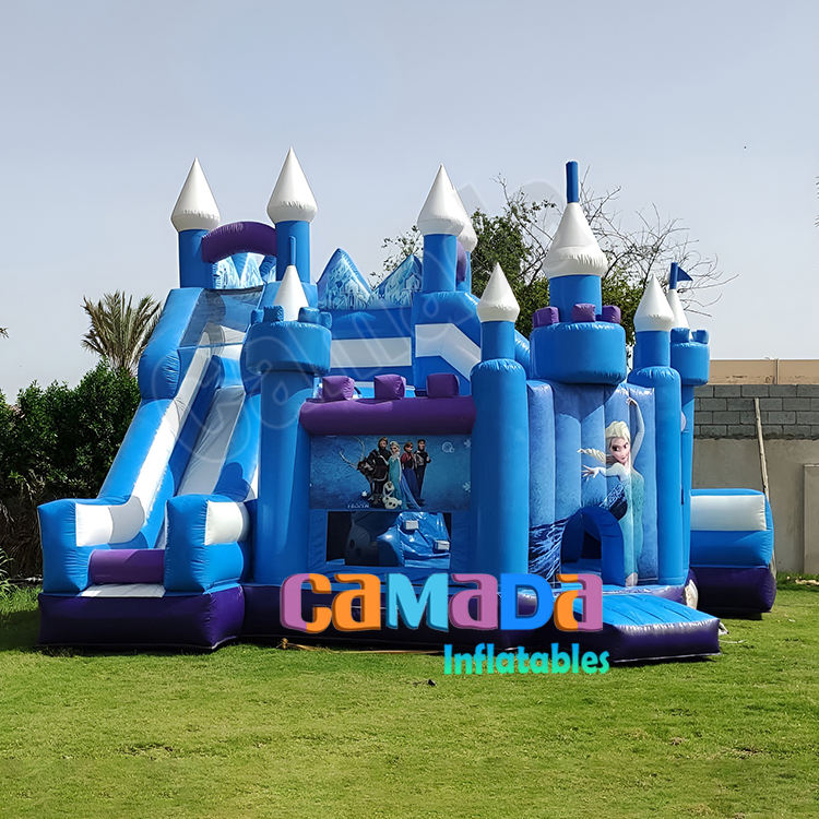 Castillo Inflable de PVC con Tobogán, Tema Hielo y Nieve Azul, Combinación de Tobogán y Zona de Brincos para Niños, Ideal para Fiestas