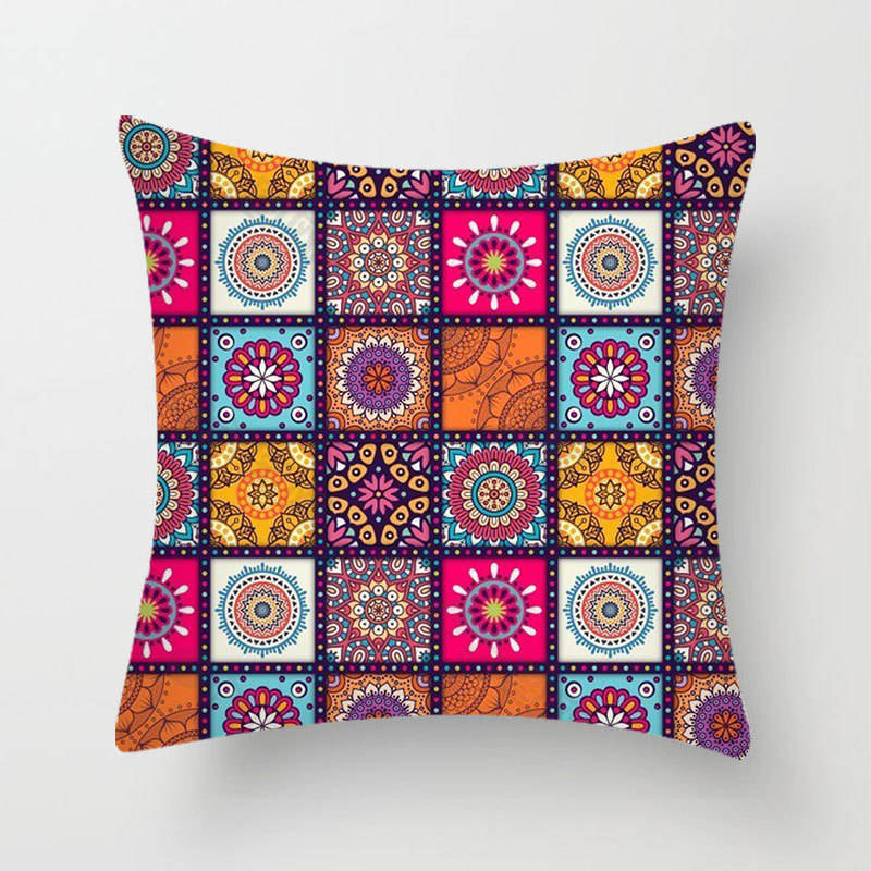 Funda de Almohada con Estampado de Mandala Colorido en Patchwork, Funda de Cojín para Sofá de Dormitorio, Decoración del Hogar de Estilo Nórdico