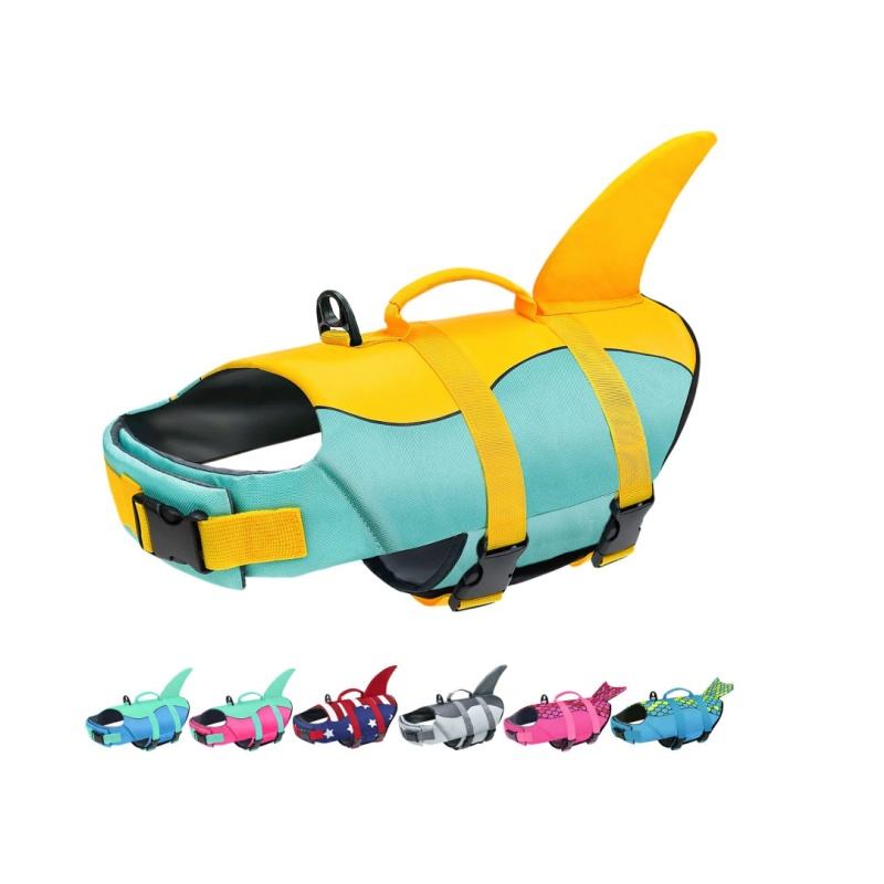 Venta caliente Premium Ripstop impermeable perro flotador abrigo tiburón verano mascota perro seguridad chaleco salvavidas