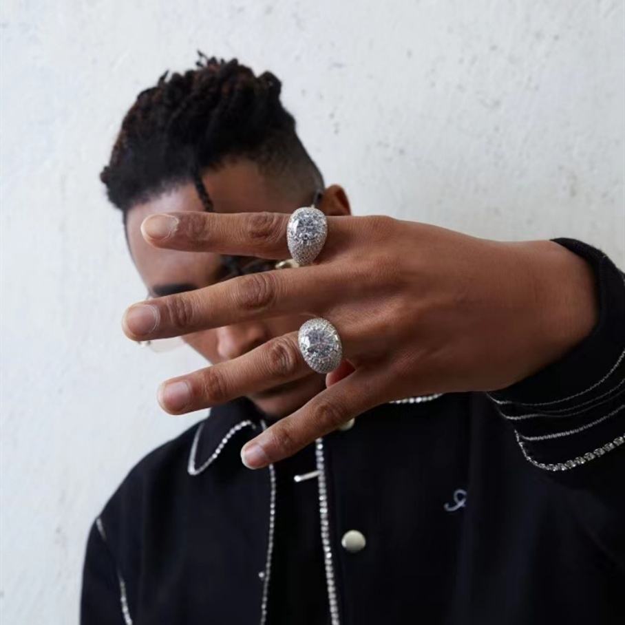 Anillo de Rapero en Oferta, Chapado en Oro de 18K, Plata de Ley 925, Anillo de Diamantes VVS Moissanite de Talla Grande para Joyería Hip Hop
