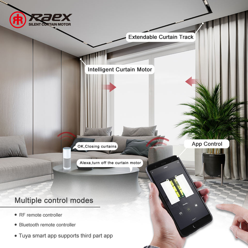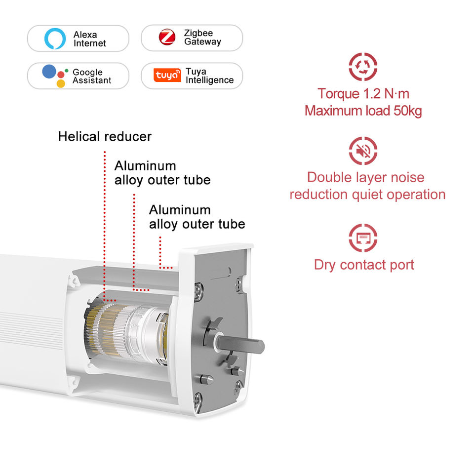 Motor Inteligente para Cortinas con Control Remoto, Aleación de Aluminio, Doble Capa, Silencioso, Compatible con SmartThings, Alexa y Google