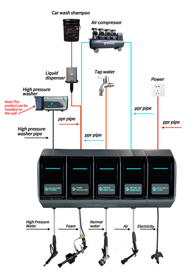 Gran oferta, caja de carrete de manguera de lavado de coches de acero retráctil, carrete eléctrico de agua y aire combinado para detalles de automóviles profesionales