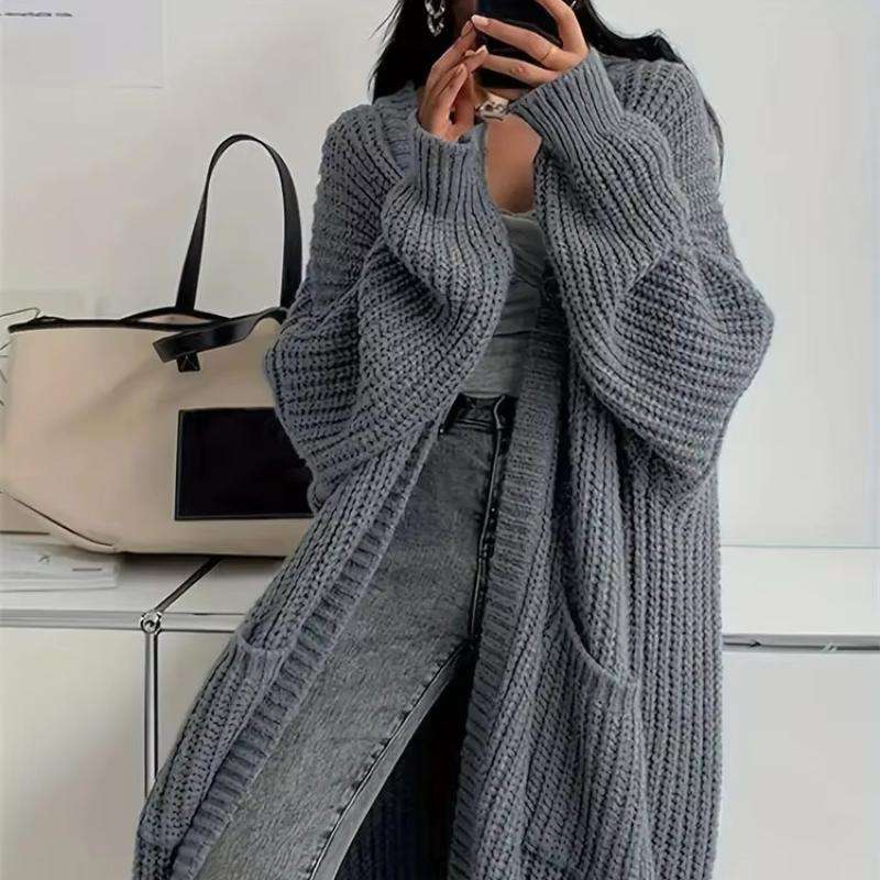 Cárdigan Acanalado de Punto Grueso para Mujer, Tallas Grandes, Estilo Casual, Suéter Largo de Ganchillo, Chaqueta de Punto Liso, ¡Gran Oferta!