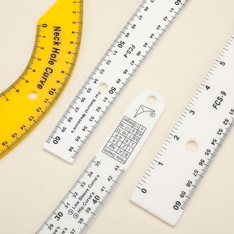Material de plástico: El material de plástico asegura que la regla sea ligera y duradera, lo que la hace fácil de manejar y de larga duración para un uso frecuente en proyectos de costura.