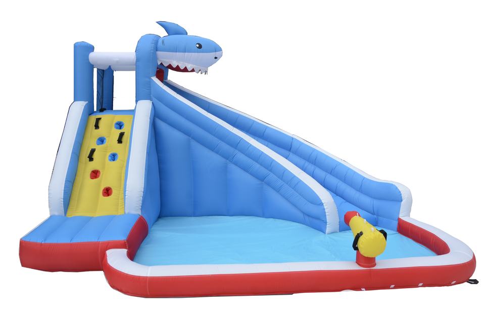 Gran oferta, tobogán acuático inflable con temática de tiburón, parque acuático para exteriores/interiores con piscina para uso doméstico y centro comercial