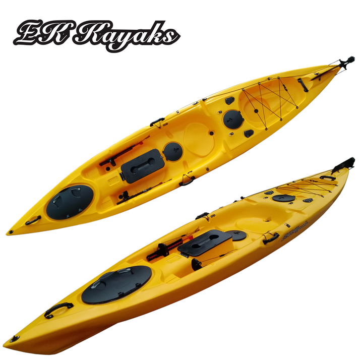 Venta caliente único LLDPE sentarse en la parte superior kayak para pesca de mar con pedal timón