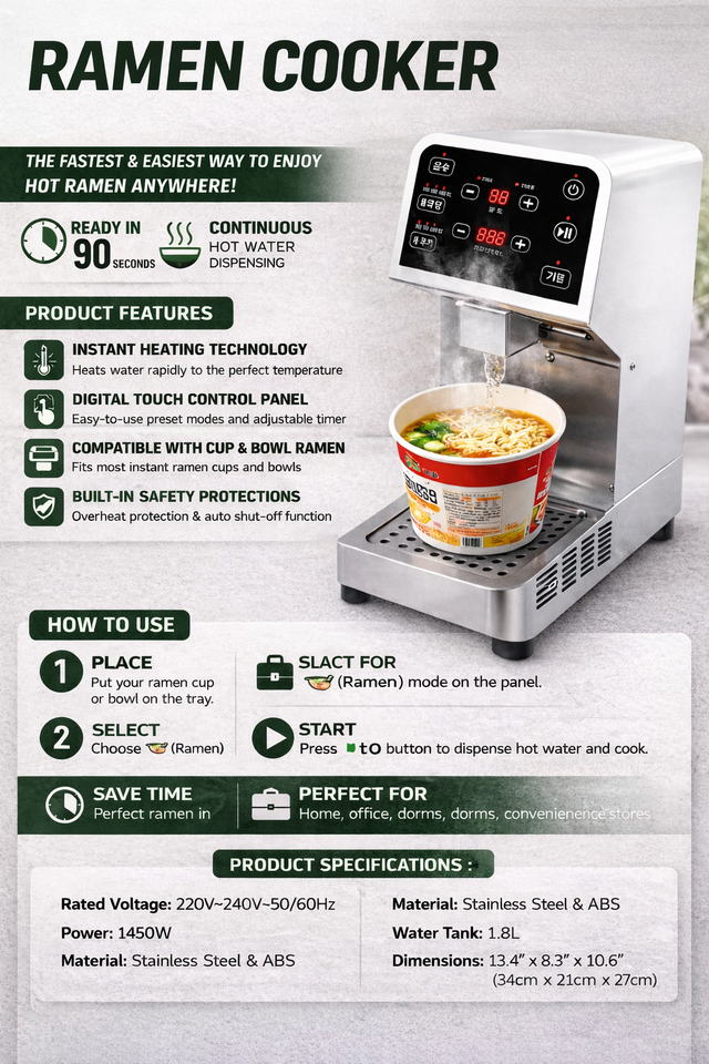 Máquina Inteligente para Cocinar Fideos Instantáneos, Calentamiento Automático de Agua, Ideal para Tiendas de Conveniencia, ¡Oferta!