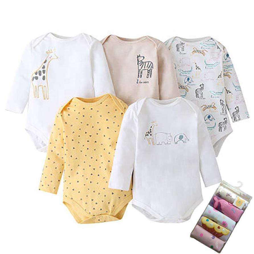 Conjunto de 5 Piezas para Bebé Recién Nacido, Primavera, Body de Manga Larga de Algodón para Niño y Niña, Romper para Bebé