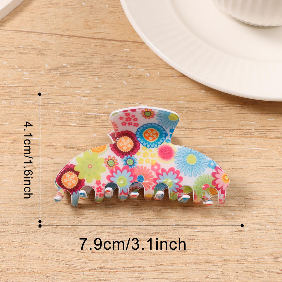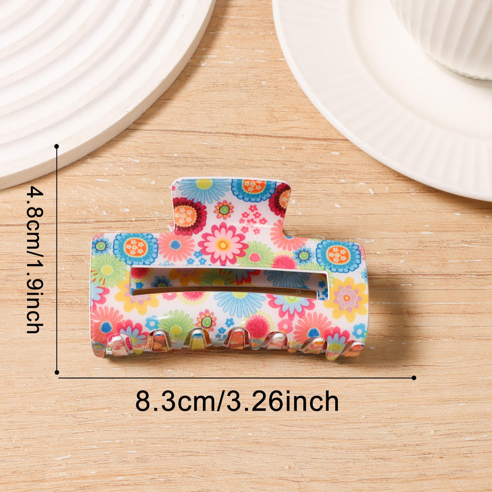Pinza de Pelo con Estampado Floral para Primavera/Verano, Pinza de Pelo Grande de Acrílico Plástico Colorido, Accesorio para el Cabello
