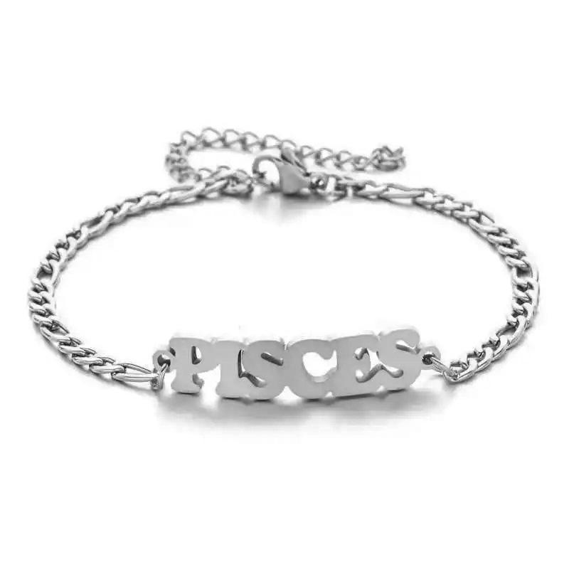 Pulseras de Moda Unisex con Colgante de Letra Inglesa del Zodiaco, Chapadas en Oro de 18K y Acero Inoxidable, Oferta