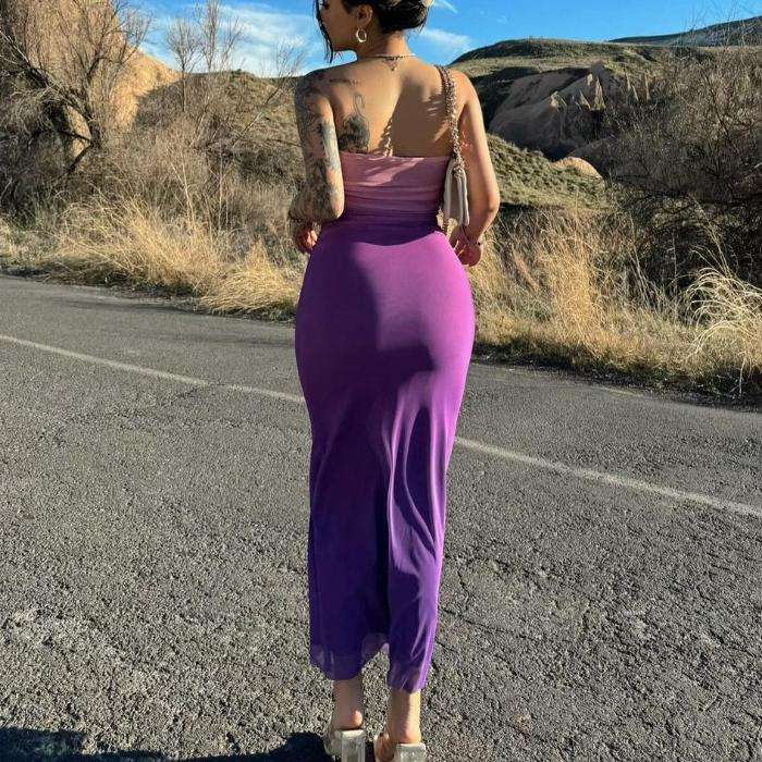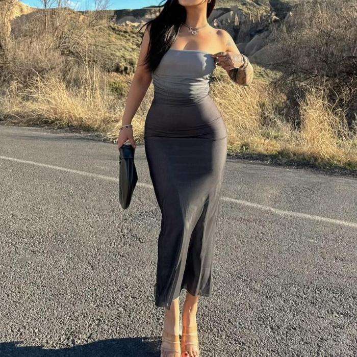 Vestido Midi Casual de Verano para Mujer, Sin Tirantes, con Espalda Descubierta, Color Degradado, en Oferta
